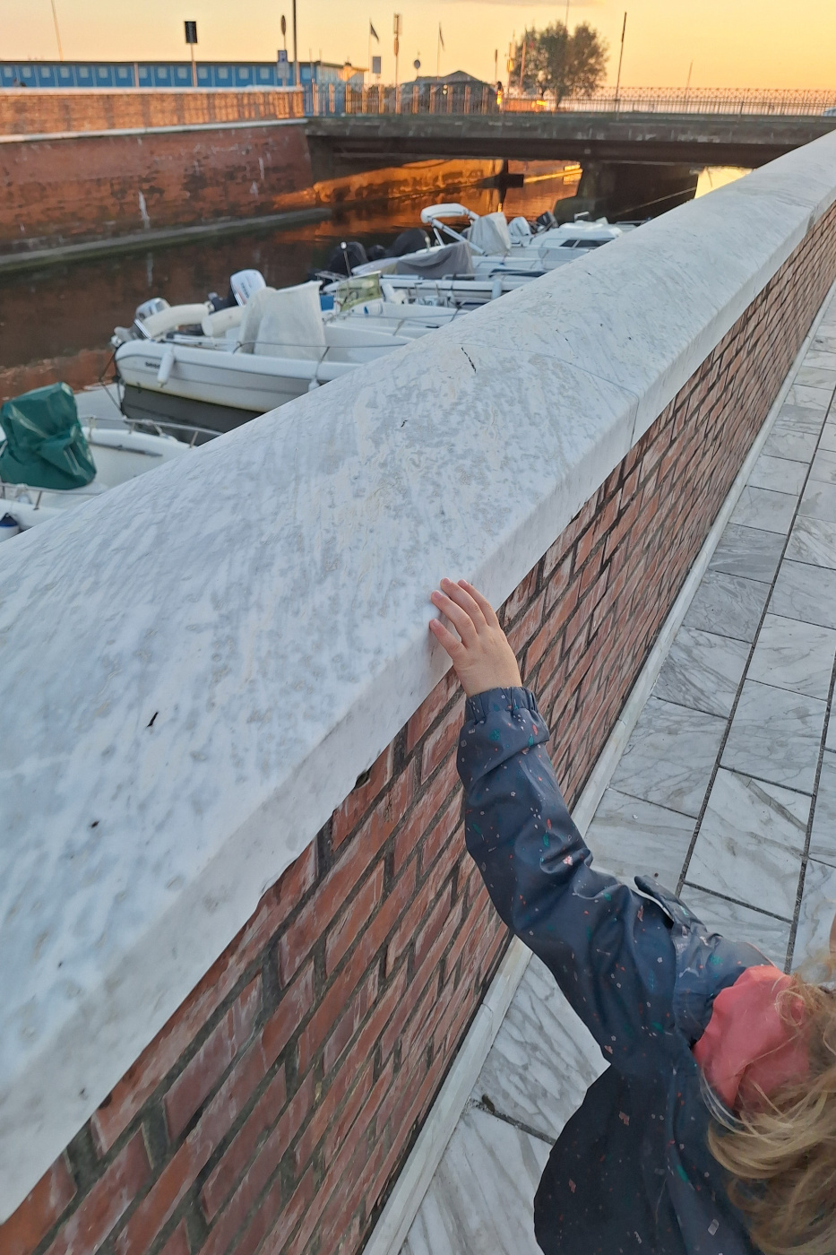 We stayed in an apartment that felt like a hidden gem, mainly because of its rooftop swimming pool and outdoor playground. Despite it being October, the pool was heated and the air was a pleasant 18°C in the shade. Swimming while looking at the white peaks of the mountains on one side and the Tyrrhenian Sea on the other was a highlight of our stay. If you look up at the peaks, you might mistake the white patches for snow. In reality, you are looking at the world-famous marble quarries that have been active for over 2,000 years. Our apartment was just 100 meters from the beach, right next to a lively playground that was full of local children when we visited it in the evening, perfect spot for our daughter to burn off some energy after the journey. One thing that immediately struck us was how the region’s marble heritage is visible even in the smallest details, the street curbs here are made of solid white marble!