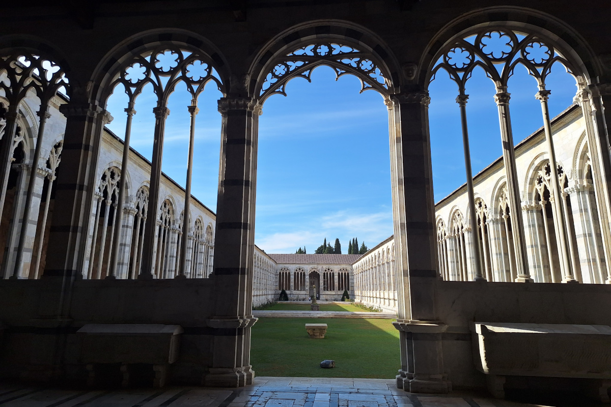 Museo dell’Opera del Duomo: This museum is an essential stop when visiting Piazza dei Miracoli, as it preserves original artworks and architectural elements from the Pisa Cathedral, Pisa Baptistery, and the Leaning Tower of Pisa. Many sculptures, doors, and marble decorations displayed here were moved indoors to protect them from weather damage, replacing them with copies outside. This allows visitors to admire their fine details up close while also understanding how they originally fit into the architecture and religious function of the square. the central green courtyard symbolized peace and eternity.
